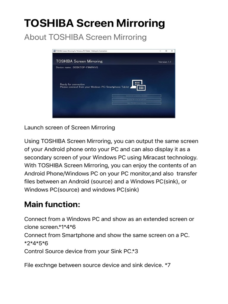 toshiba screen mirroring microsoft